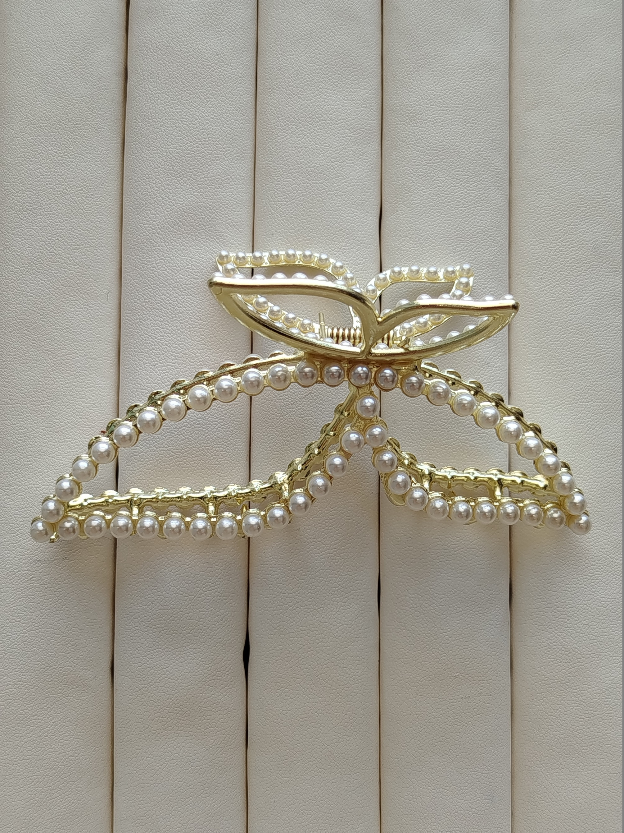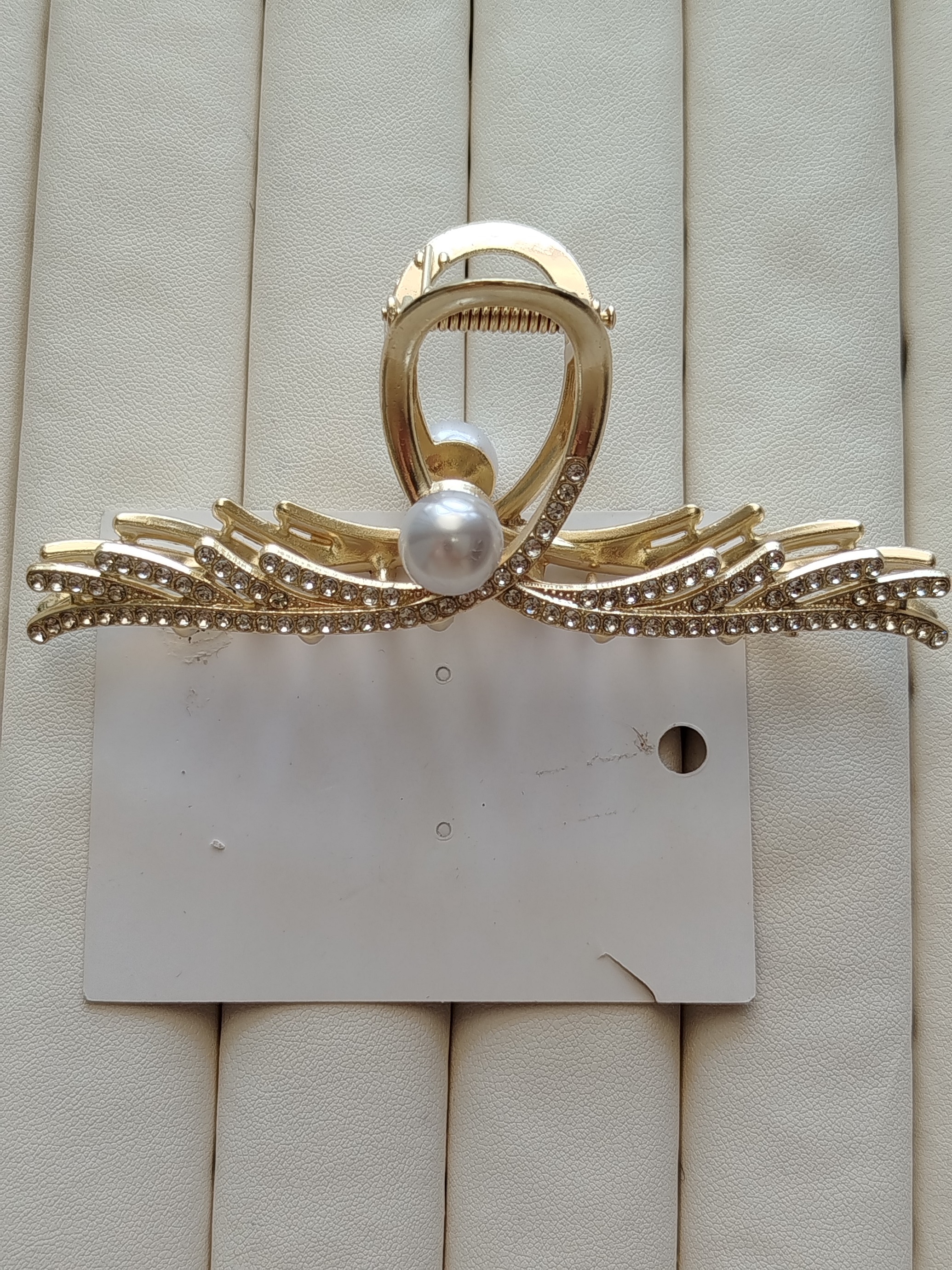 کلیپس وارداتی فلزی فول نگین ومروارید طرح پروانه کد 17