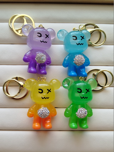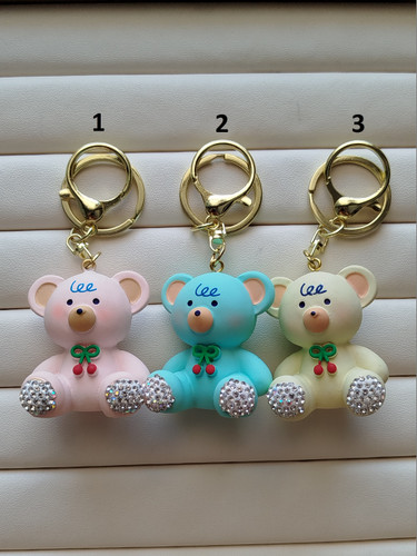جاکلیدی حلقه طلایی -پوم پوم دار خرسی نگین دار -کد 4