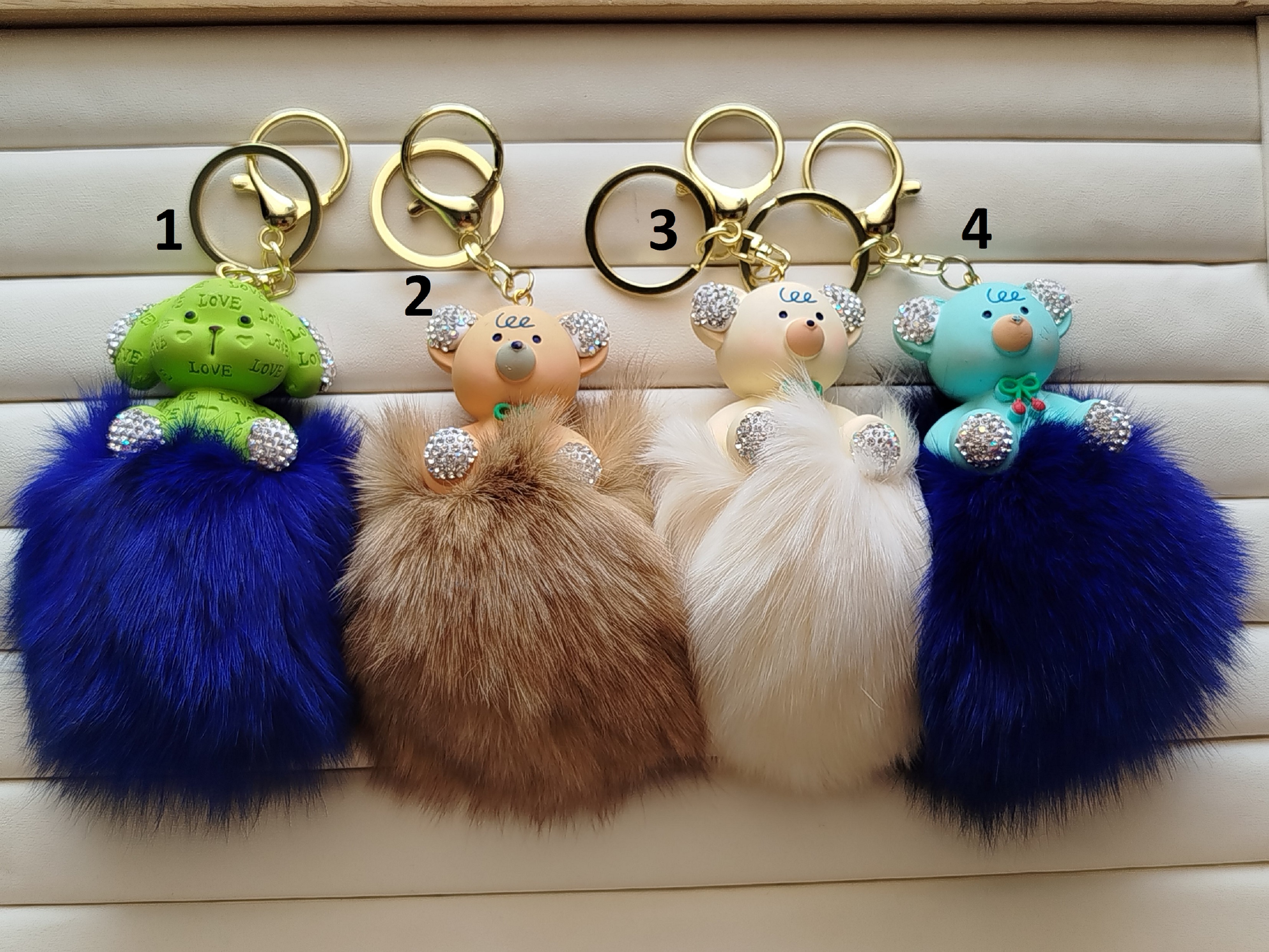 جاکلیدی حلقه طلایی -پوم پوم دار خرسی نگین دار -کد 4