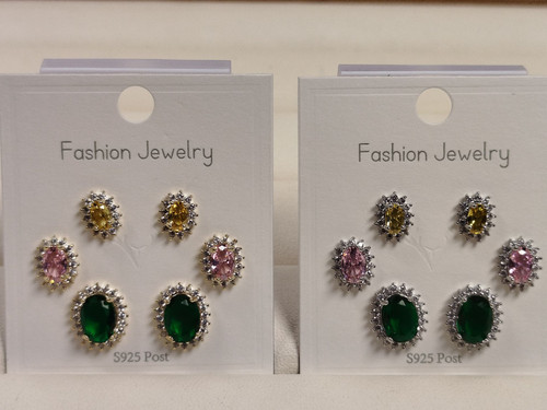گوشواره نگین رنگی بیضی پک 6 عددی کد 93