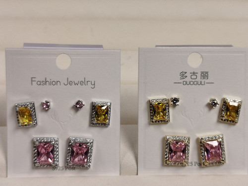 گوشواره نگین رنگی مستطیل پک 6 عددی کد94