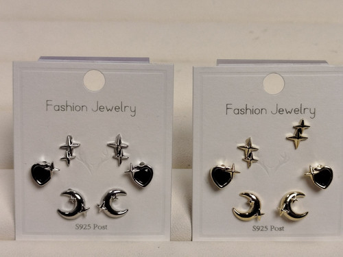 گوشواره نگین مشکی طرح ماه ستاره پک 6 عددی کد 95