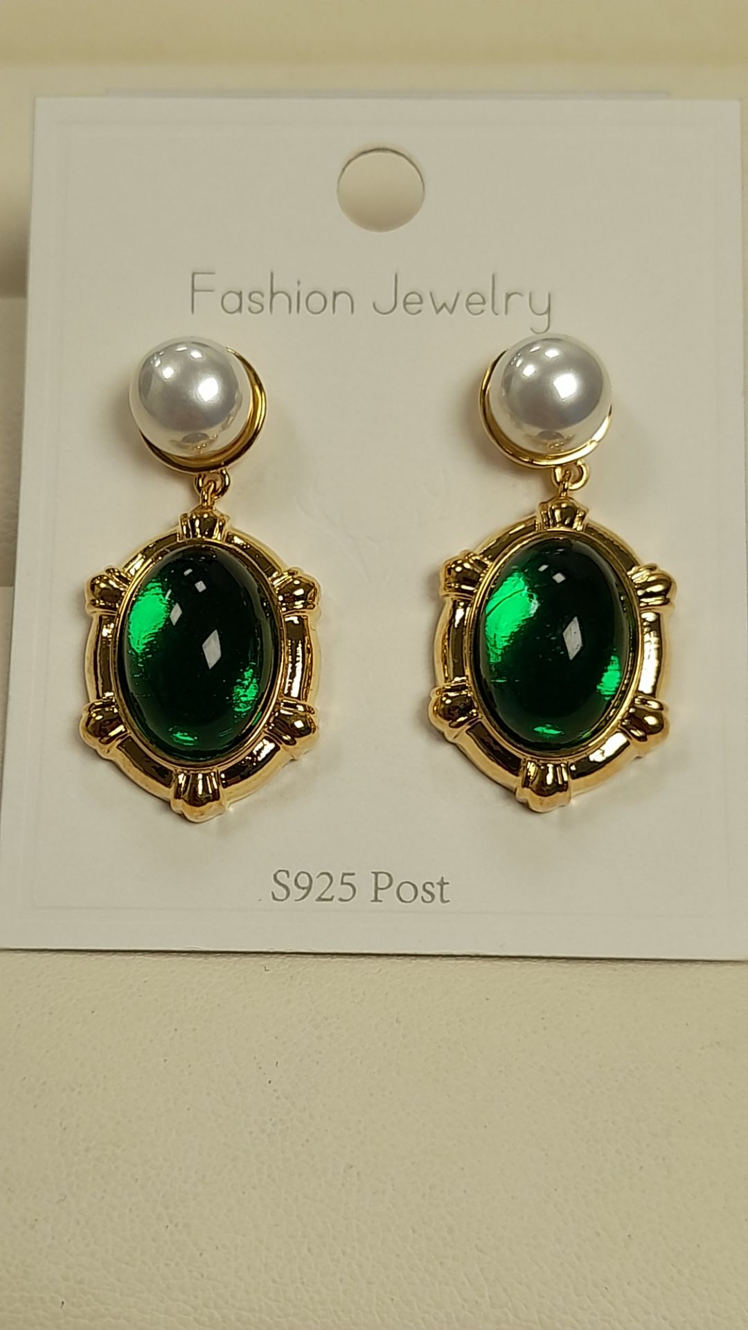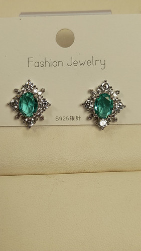 گوشواره نگین بیضی سبز کد 107