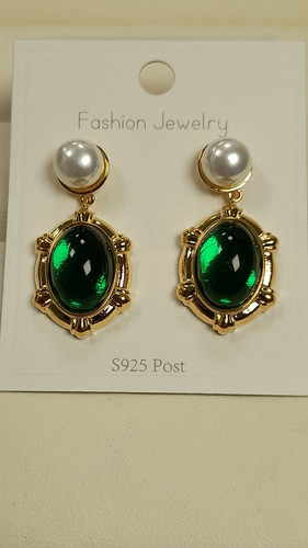 گوشواربه نگین بیضی سبز کد 119