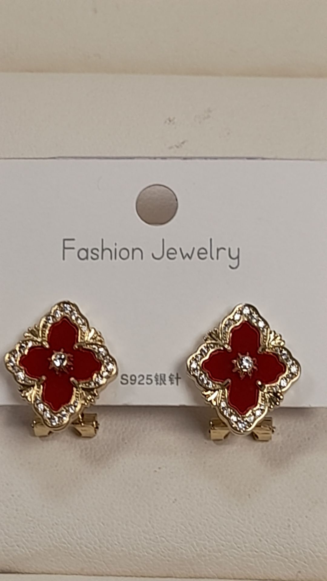 گوشواره چفتی ونکلیف نگین قرمز کد 110