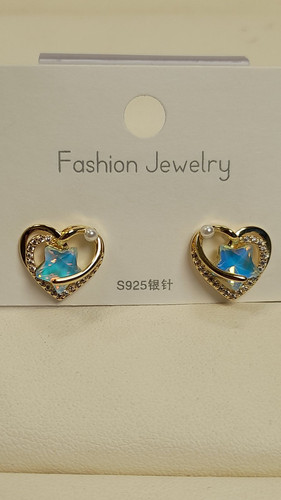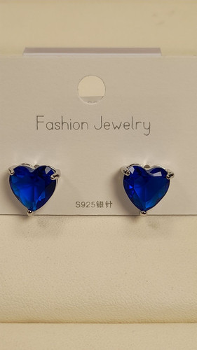 گوشواره نگین قلبی آبی کاربنی کد 124