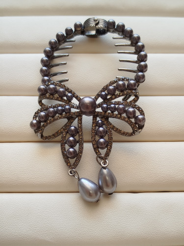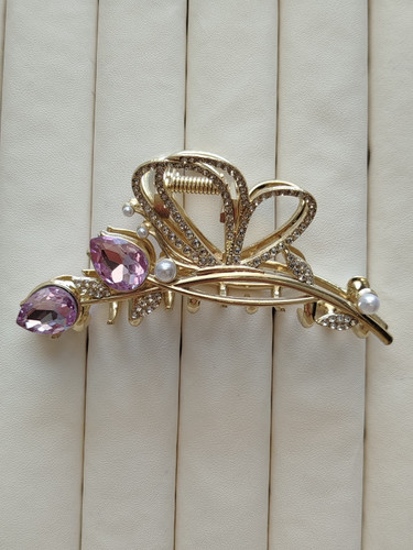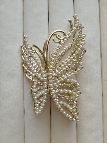 کلیپس وارداتی فلزی فول نگین ومروارید طرح پروانه کد 17