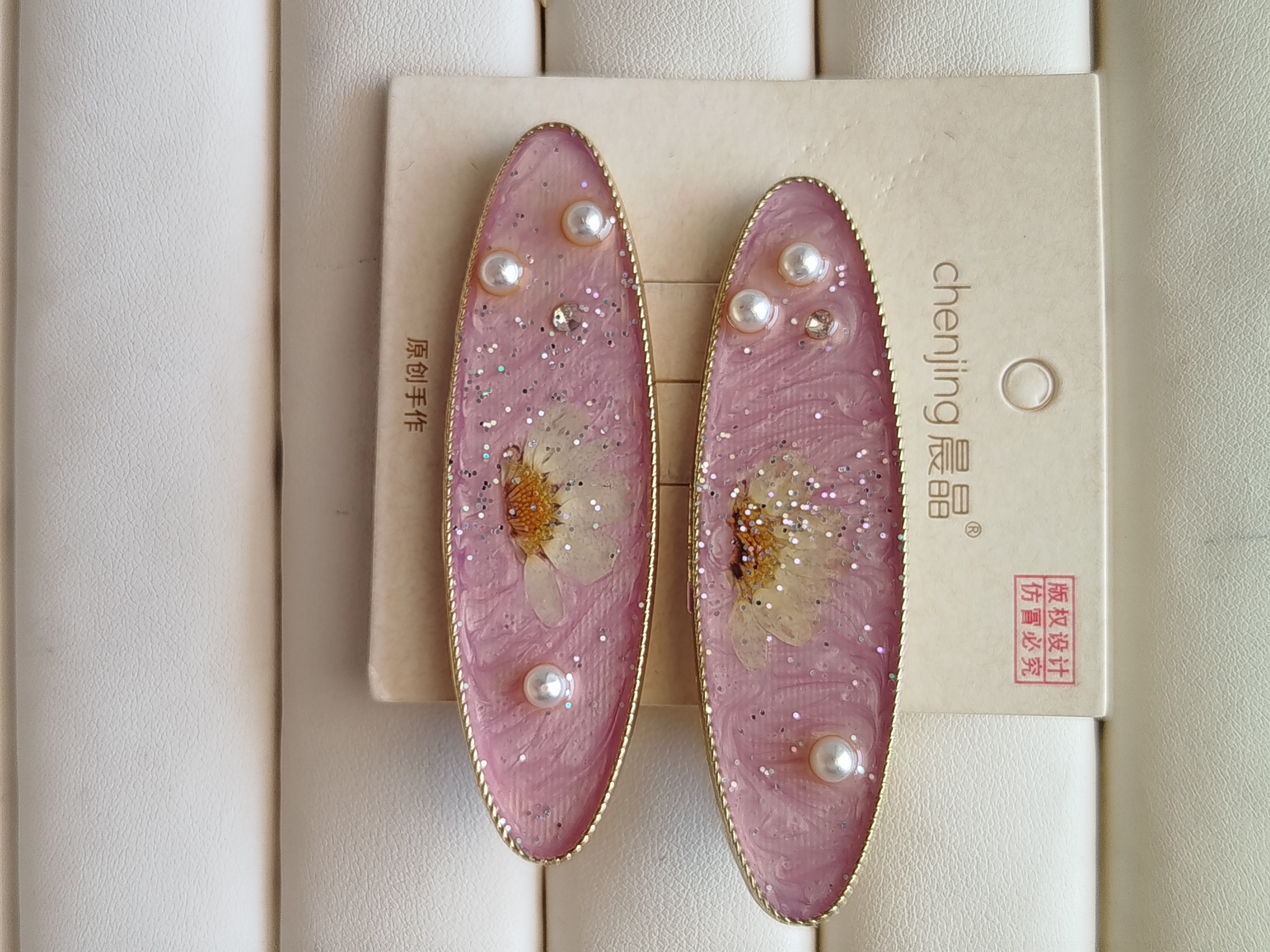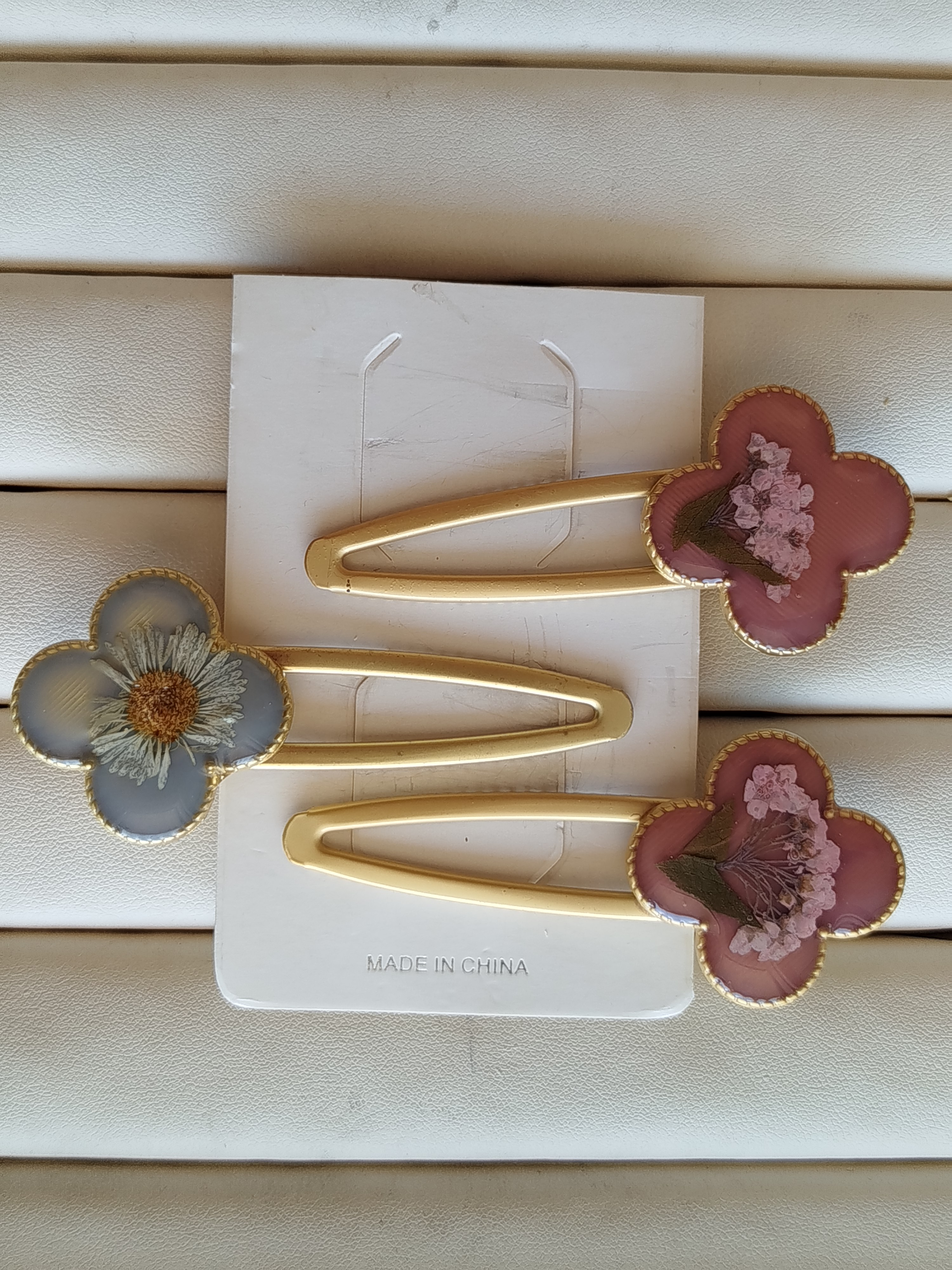 گل سر انبری رزینی طرح بابونه سته 2 عددی کد 46
