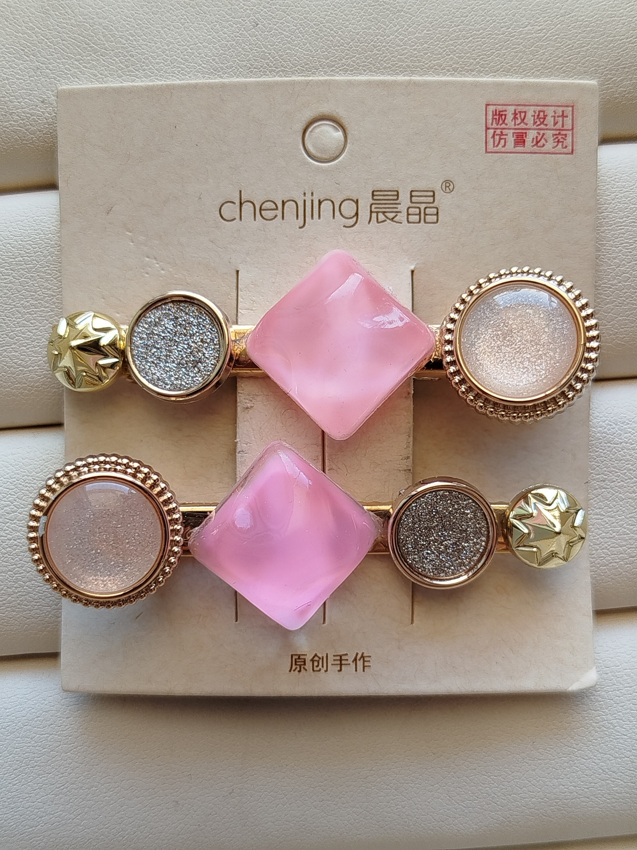گل سر انبری نگین صورتی بسته 2 عددی کد 27