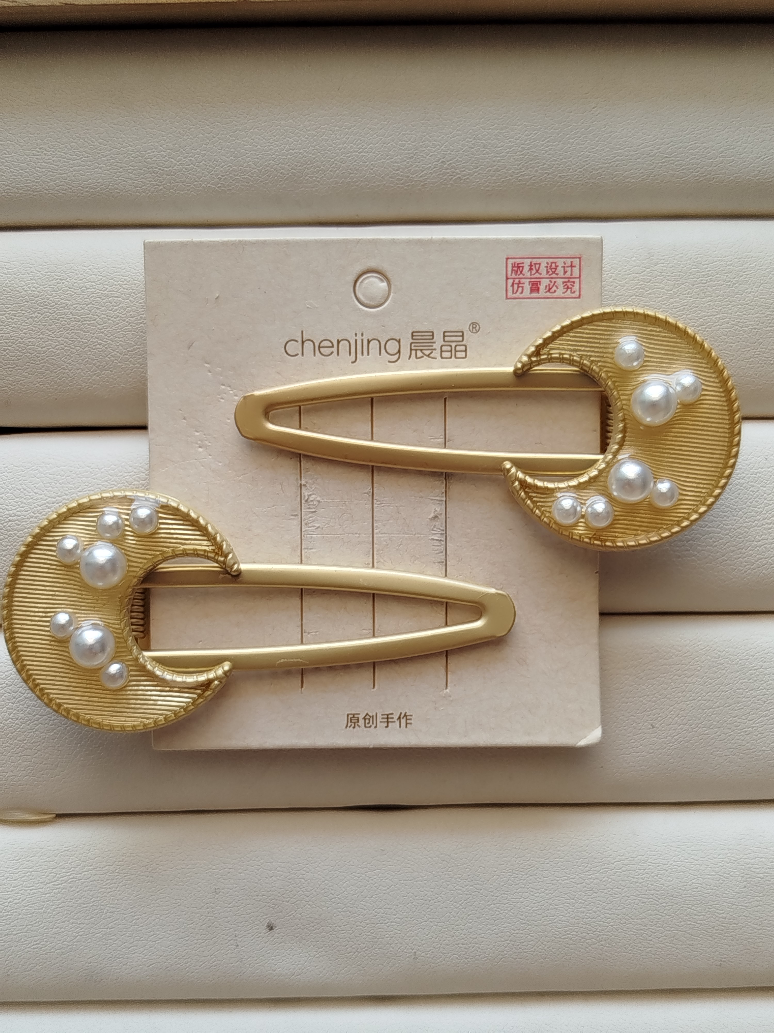 گل سر تق تقی طرح ماه مرواریدی بسته 2 عددی کد 57