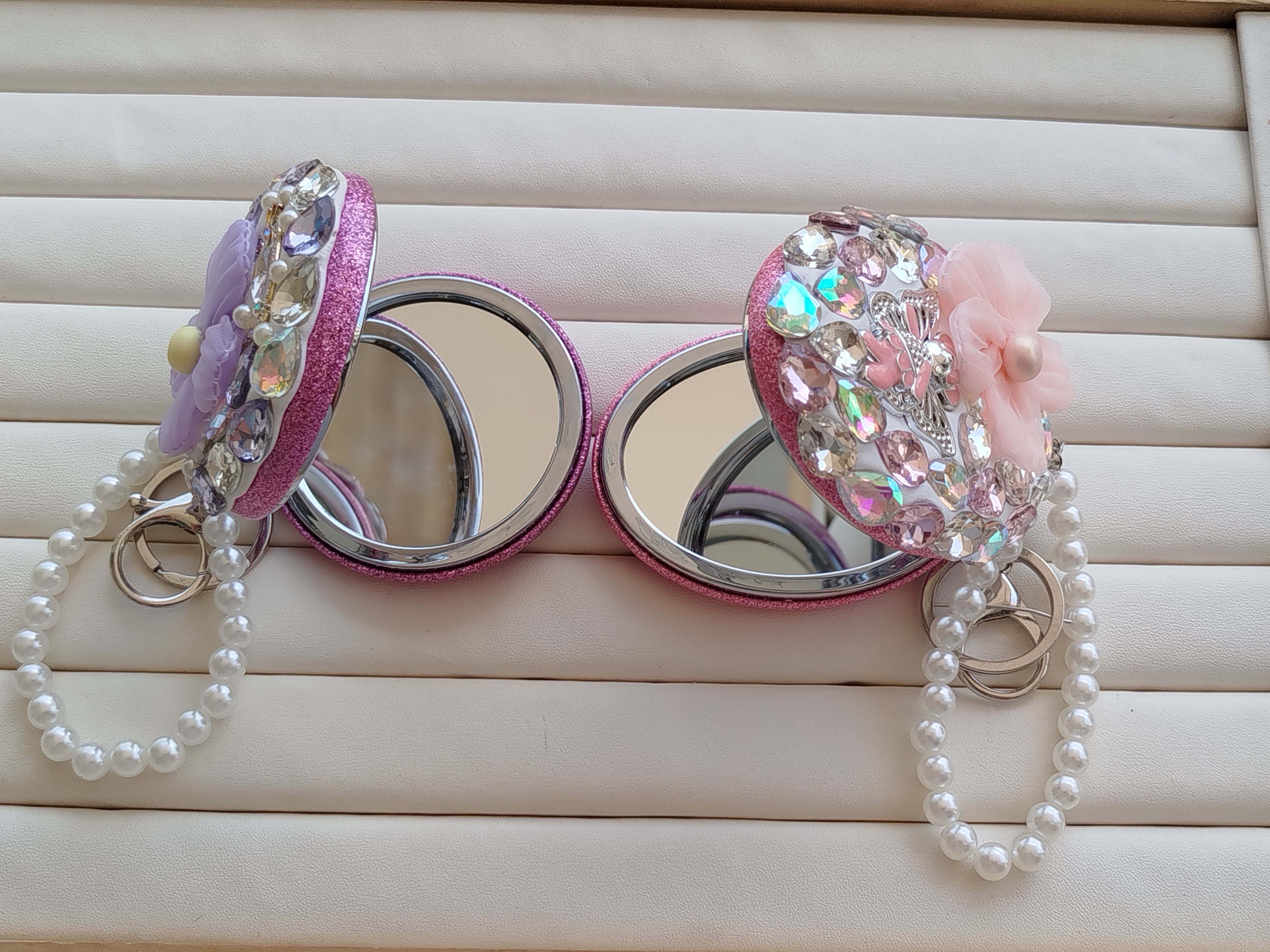 آینه آرایش نگین کاری شده جا کلیدی و آویز کیف کد 4