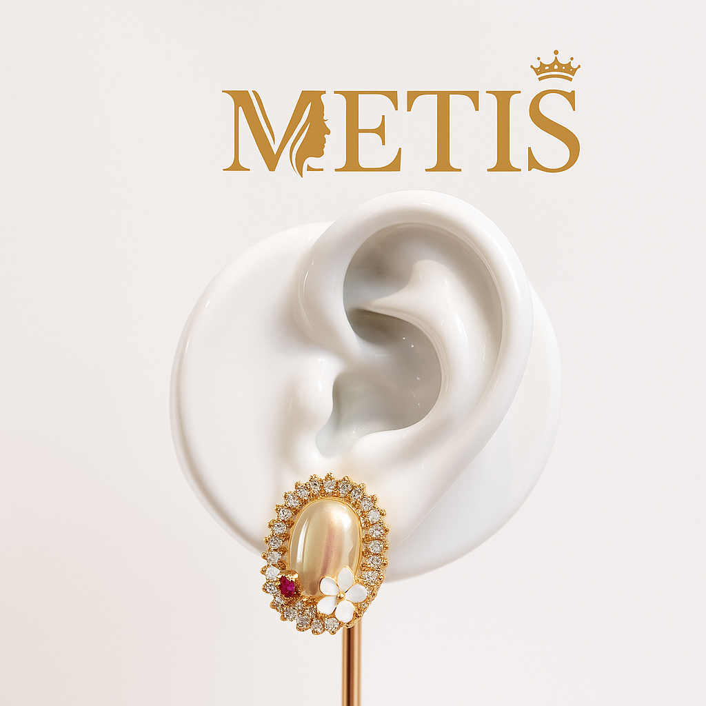 گوشواره مجلسی بیضی دور نگین ومروارید نباتی کد 9