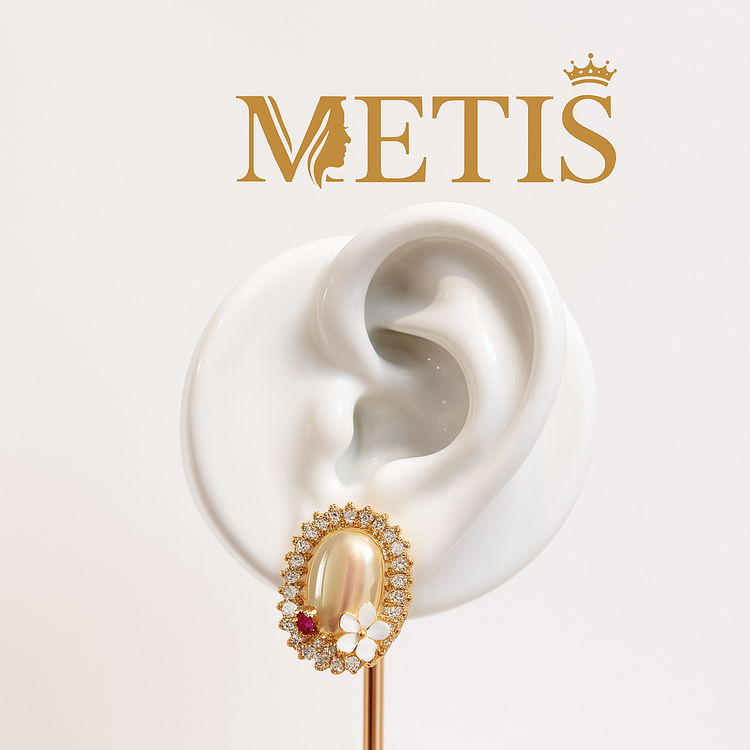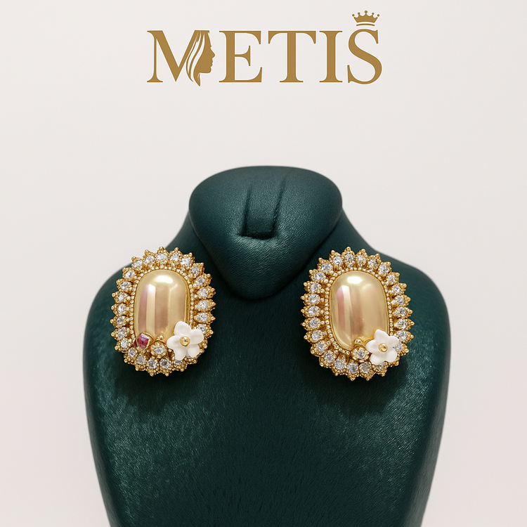 گوشواره مجلسی بیضی دور نگین و مروارید نباتی کد 9