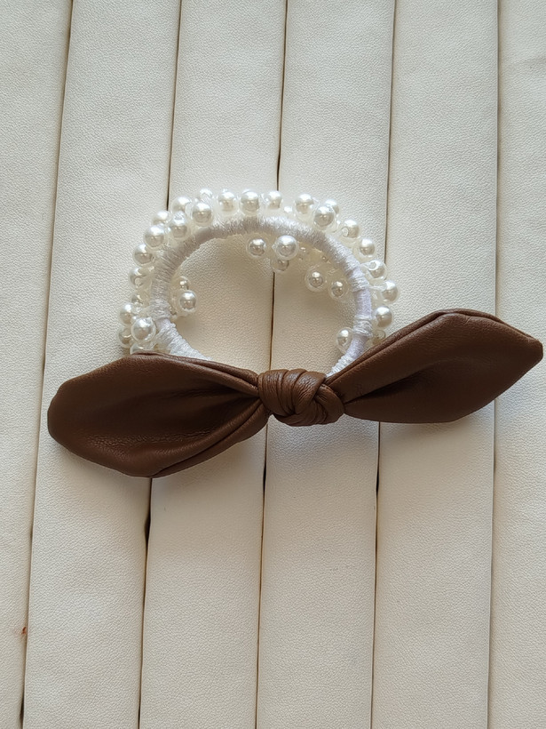 کش مو پاپیون چرمی تمام مرواریدکد 31