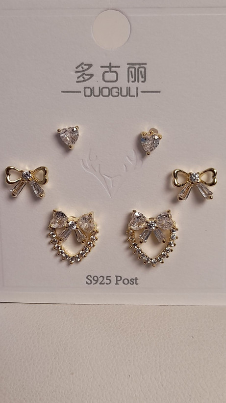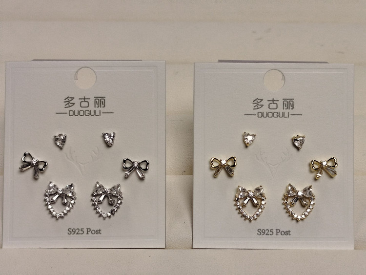 گوشواره نگین دار پاپیونی پک 6 عددی کد 90