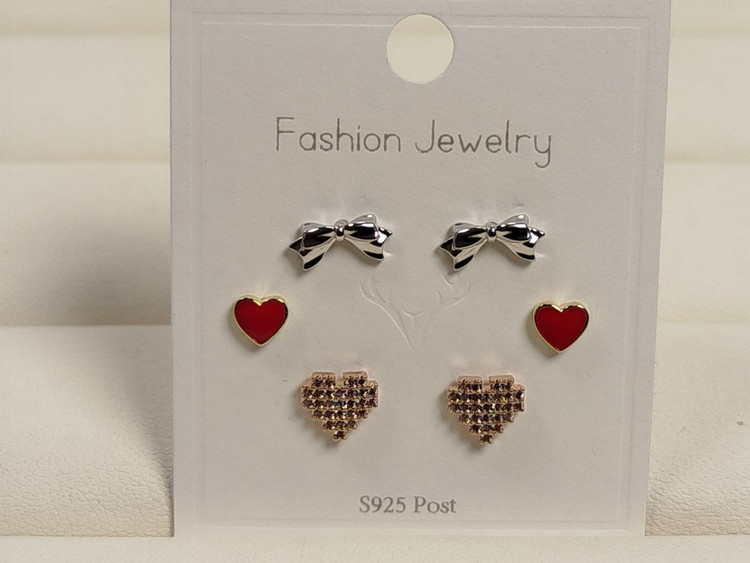 گوشواره قلبی پک 6 عددی در 3 رنگ کد 99