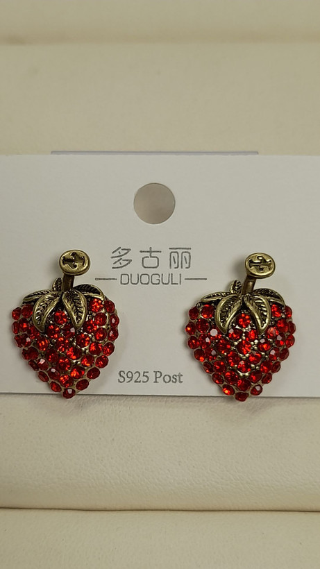 گوشواره نگین رنگی طرح توت فرنگی کد 108