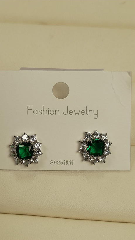 گوشواره نگین مربعی سبز کد 118
