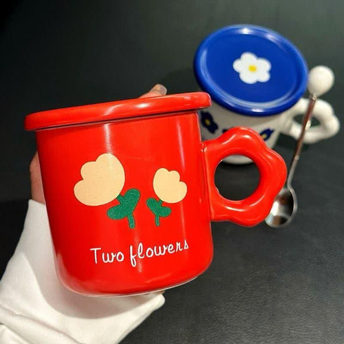 ماگ سرامیکی طرح دار قرمز به همراه درب کد 4
